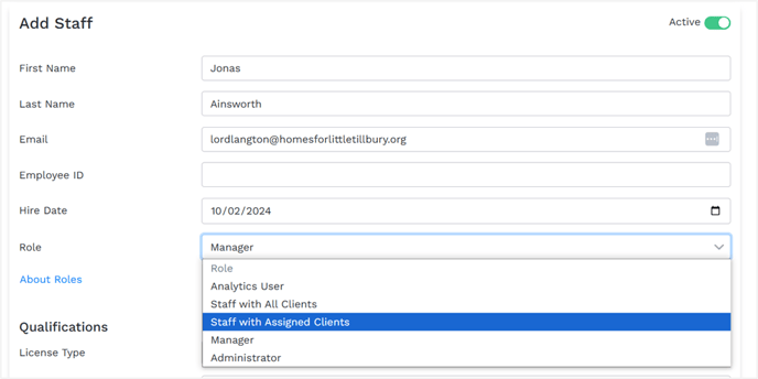 - The Role “Staff with Assigned Clients” is already selected by default, so no action is necessary.