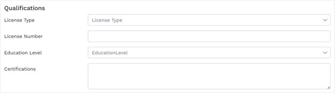 Note: Based on customer request, the fields under Qualifications are available to enter additional information about Staff users. You may skip these fields.