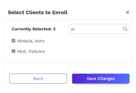 - Select the desired Clients to Enroll, and then click Save Changes.