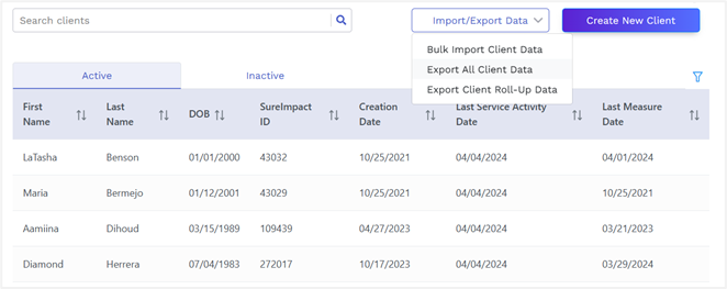 Note: The Client data reports are updated through our data warehouse four times a day (8:00 a.m. ET, 12:00 p.m. ET, 4:00 p.m. ET, and 7:00 p.m. ET). If you are adding clients now, you will not be able to export them until after the data warehouse updates the next time.