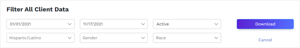Note: If you decide you want to remove a filter you have applied, simply click the X next to the filter you have applied. You can also click Clear All Filters to remove all filters you have applied. - Once you have applied all of the desired filters, click Download.