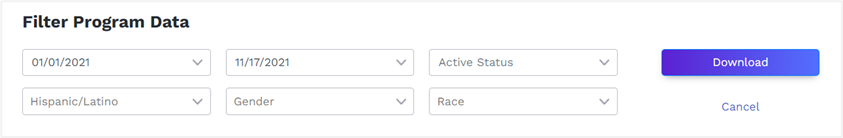 - To filter program data by date, click the Start Date filter, and then select the desired Start Date. Click the End Date filter, and then select the desired End Date.